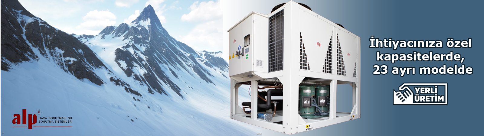 Alp chiller grupları, çevre dostu soğutucu akışkanlarla çalışmaktadır.  Endüstriyel mekanların ihtiyaçları göz önünde bulundurularak uzun ömürlü üretilen chillerler, hidrolik kitli modelleriyle de kolay ve hızlı monte edilebilmektedir.